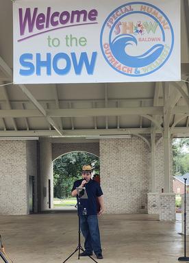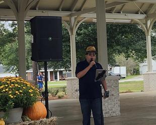 Reid on the main stage of the SHOW Baldwin, Inc. 2025 edition of Oct-SHOW-ber-Fest, Loxley Municipal Park, AL. SHOUT out to Ms. Gates and Ms. McWilliams for inviting Reid to perform. Reid made some new fans and friends at this fun event. See you next year!